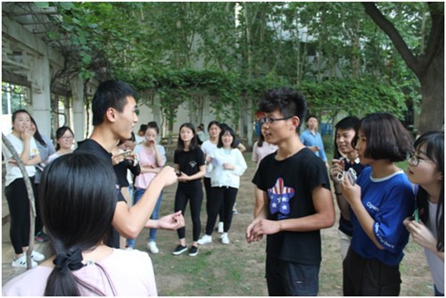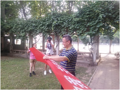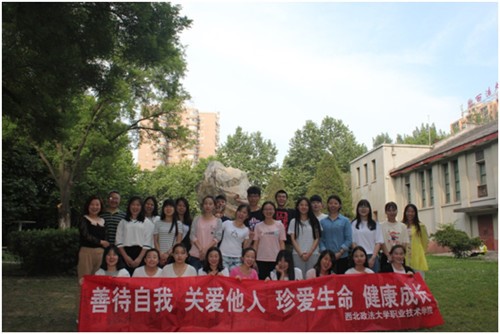四.5月18日在雁塔校区小花园进行了心理趣味游戏活动,游戏活动中学生们的热情空前高涨,尤其是我院副书记王国庆老师和辅导员晋艳老师的参加,将整个心理健康活动推向了高潮,活动结束后老师和同学们集体在宣传横幅上签字并拍照留念。