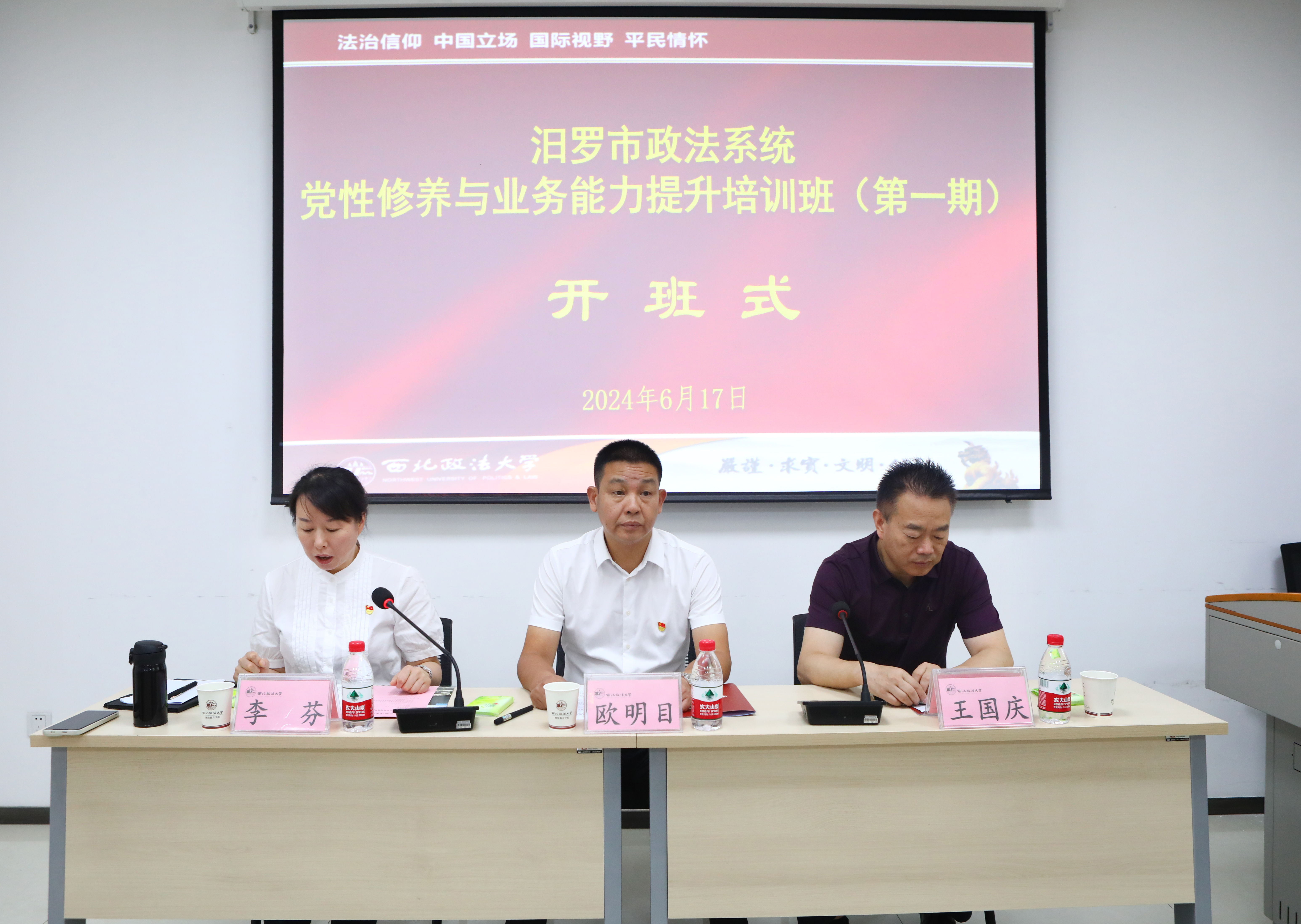 副院长、培训中心副主任、律师学院副院长王国庆及46名学员参加了开班式。开班式由汨罗市法院党组书记、院长李芬主持。