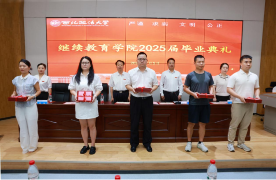 学院办公室主任王雨婷宣读了《关于表彰2025届优秀函授生、模范学生干部的决定》。在热烈的掌声中,受表彰的优秀函授生和模范学生干部依次上台,接受学院颁发的荣誉证书及奖品。
