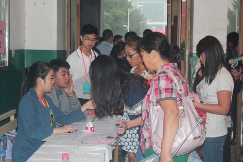 9月10日上午,职业技术学院2014级新生陆续开始报到注册,紧张有序的迎新工作正式开始。学院领导现场指导,各部门老师紧张有序地为新生办理相关手续,学生志愿者们为新生提供向导服务,帮助搬运行李,雨天的不便也没有降低老师和志愿者们的热情。为使学生尽快了解学校情况,适应学校生活,新生报到当天晚上,学院安排进行了新生入学的第一次班会,并与参加军训的教官见面,对接下来的军训工作进行了部署和安排。