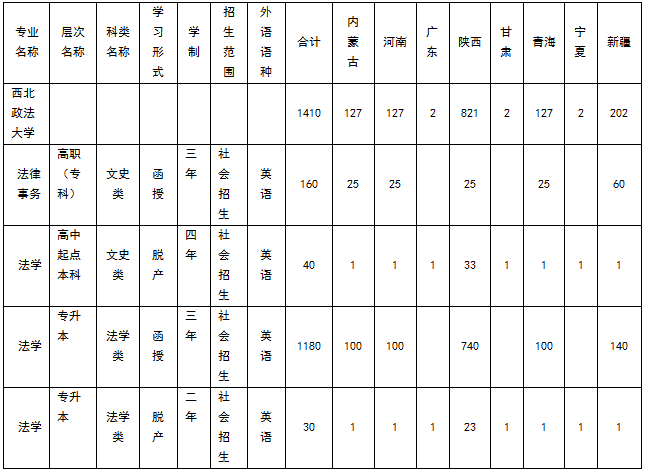 法律事务专业专科:函授高中起点专科学制三年,开设宪法、民法、民事诉讼法、刑法、刑事诉讼法、行政法、行政诉讼法、知识产权法、国际经济法等20余门课程。