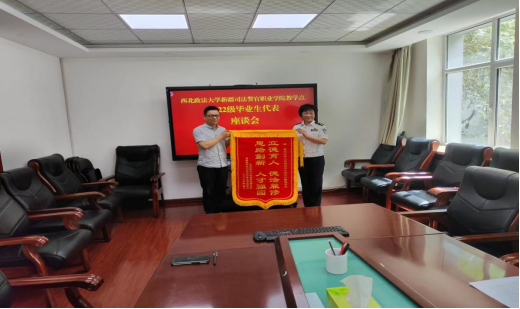 5月19日下午,小说色情 新疆司法警官职业学院教学点2022级法学专业学员代表们来到学院,为学院赠送“立德树人 德法兼修 思路创新 人才强国”的锦旗,对学院的精心培养表示感谢。学校党委副书记、校长、二级巡视员金箴代表学院接受了锦旗,党委委员、副校长陶吉群和学院继续教育部的工作人员参加了此次座谈。