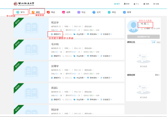 二、输入用户名和密码,进入学习界面